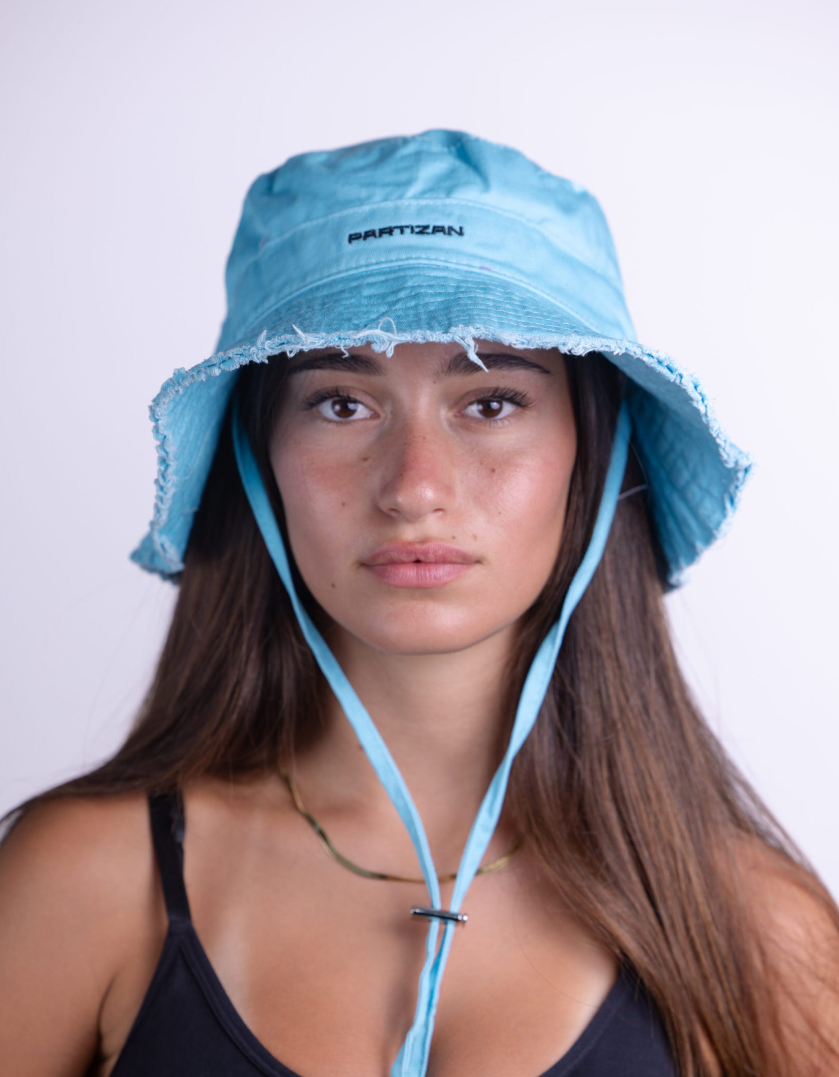 .עשוי 100% כותנה , עם שוליים רחבים ורכים עם גימור פרום בקצה PARTIZAN כובע באקט כחול שמיים מבית המותג